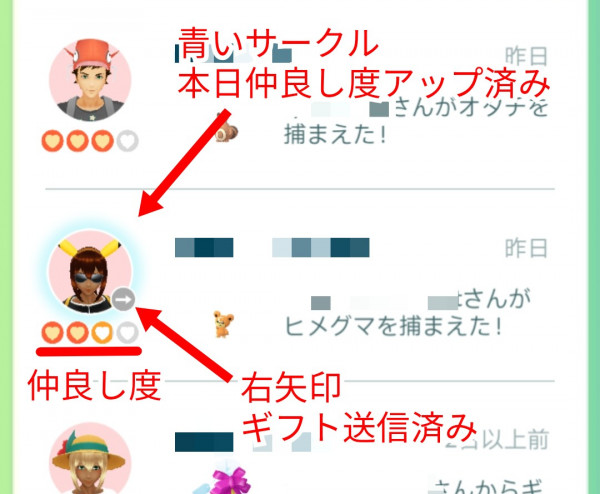 ポケモンgo フレンド アイコン 矢印