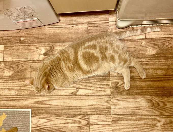 これはうっかり踏んじゃう フローリング床に擬態化してる猫の溶け込み